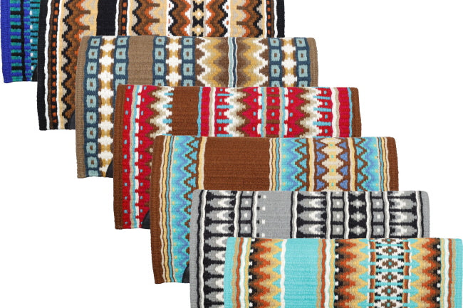 Turn heads in the show ring or on the trail with the Showman® 40" x 34" Wool Show Blanket — a stunning oversized blanket crafted for both beauty and durability. Made from premium multi-colored wool, each blanket features a bold Southwest-inspired pattern that captures the perfect balance of tradition and style. The larger 40" x 34" size provides extra coverage and ensures an elegant drape over your saddle, making it ideal for riders who appreciate a polished, professional look.