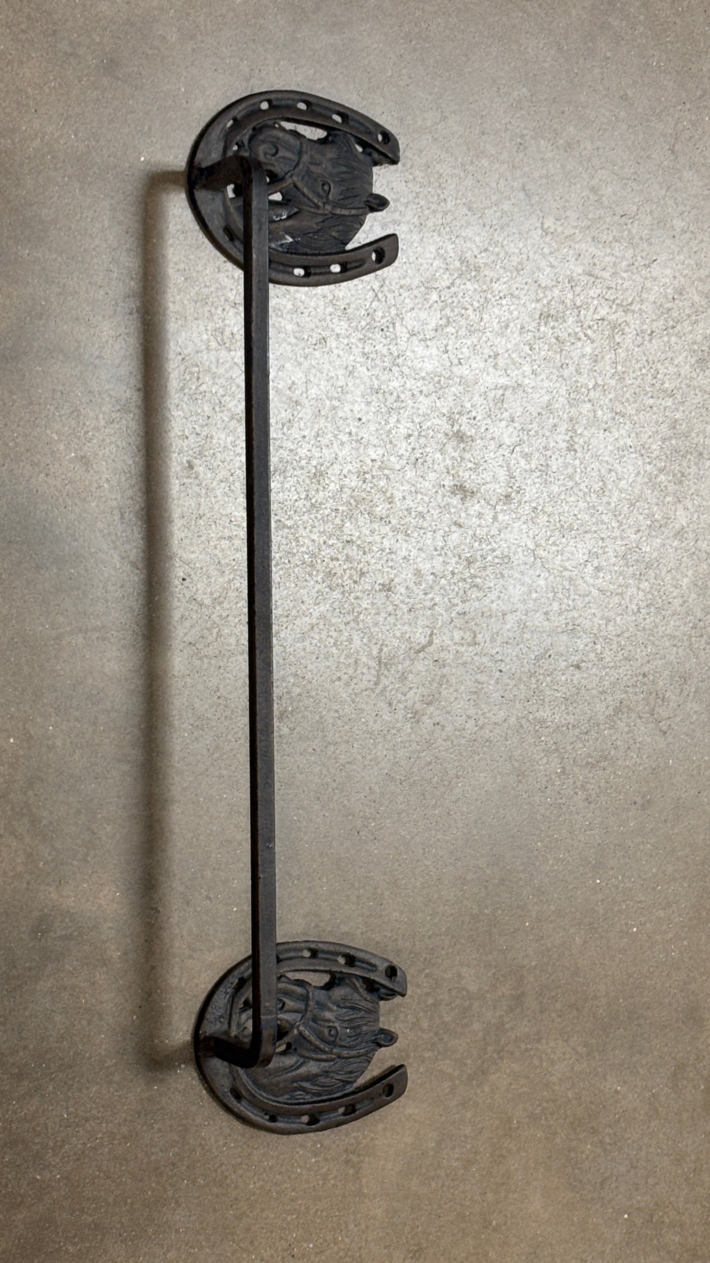 Cast Iron Towel Holder.  Horse Head in horse shoe sides