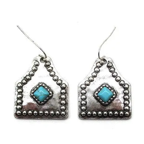 Western Turquoise Stone Cattle Tag Earring