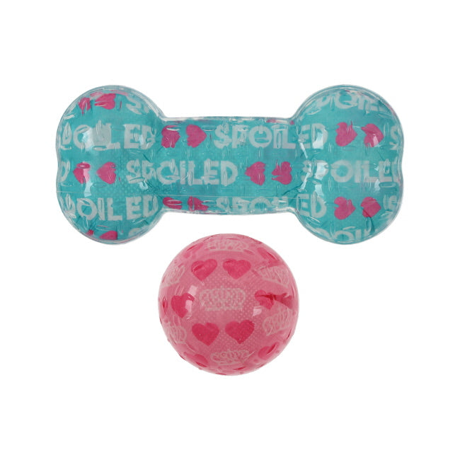 Dimensions: Bone - 6.5" x 3" x 1.5" | Ball: 3" x 3"