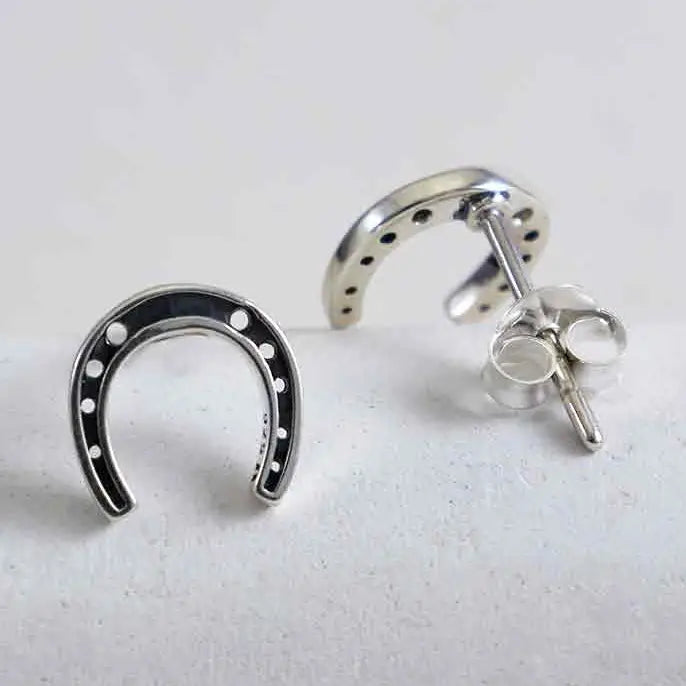 Sterling Silver Horseshoe Post Earrings. Let these beautifully detailed Wild West earrings bring you good luck! 9x8mm