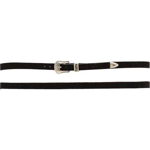 Create your own personalized hat style with this leather hatband by M&F Western Products¨. This hatband features a black suede strap. This style hatband uses a belt style adjustment with a silver buckle. Perfect for going out on the town.