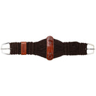 Designed with functionality in mind, it features a sturdy leather center with D-rings for easy gear attachment, along with a leather keeper on one end for added convenience. Finished with stainless-steel buckles for long-lasting durability, this girth is ideal for roping, trail riding, or competition use.