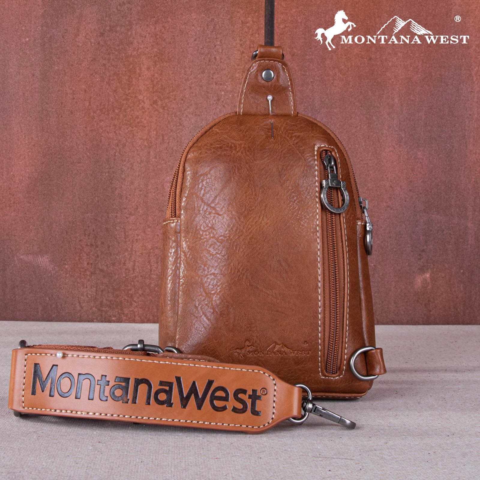 Made of PU leather (suede-feel), this western sling crossbody has: