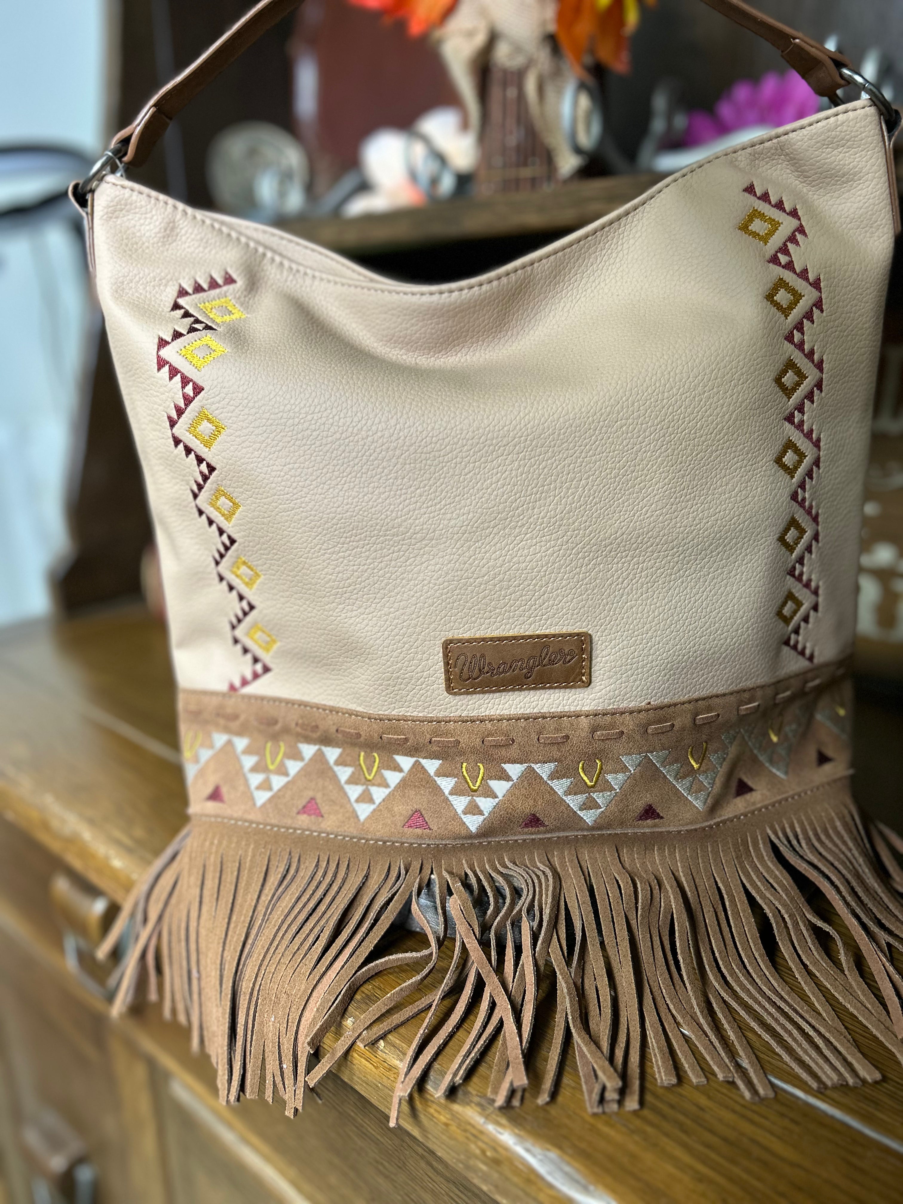 Wrangler Aztec Embroidered Hobo/Crossbody ~ Tan