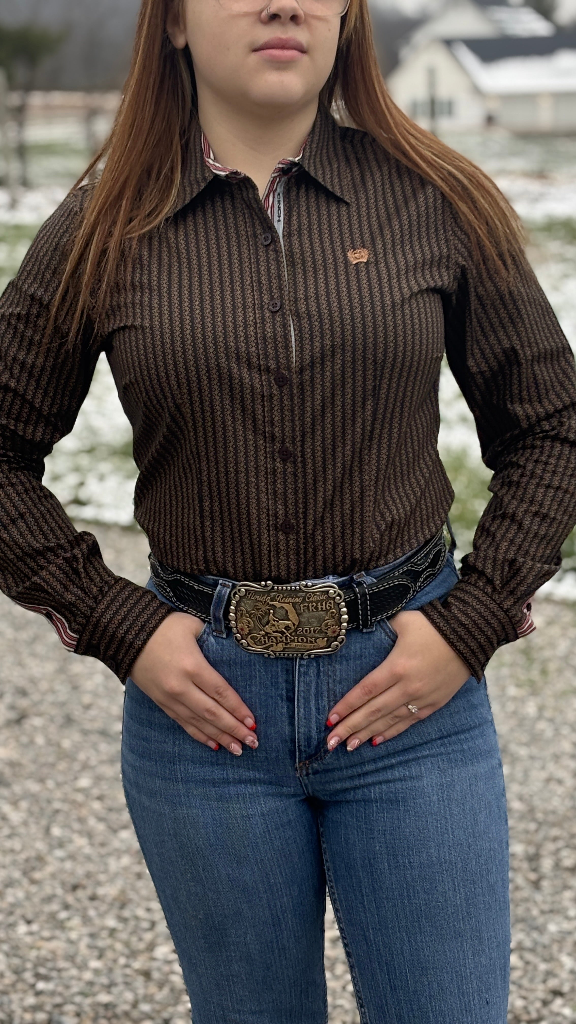 This CINCH Ladies button-up shirt will look great with all your favorite CINCH ladies jeans!