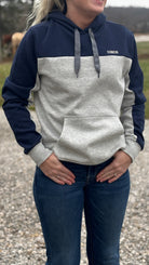 Navy & Grey Women's Hoodie by Cinch®. Designed for warmth and comfort, it’s ideal for all your fall adventures and tailored to provide a perfect fit. Celebrate Cinch Rodeo Brand!