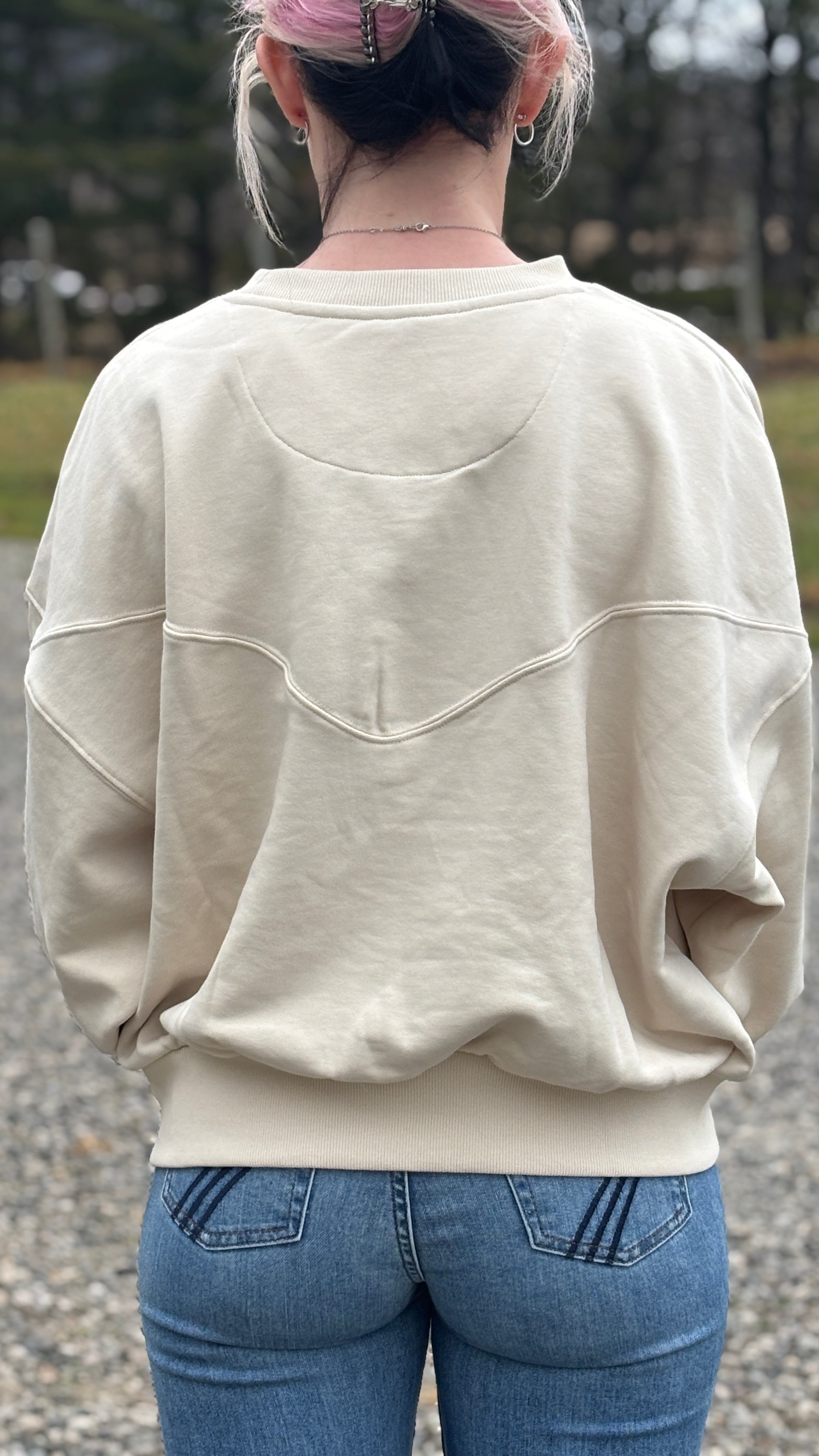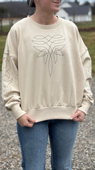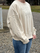 Embrace the spirit of country style with this cream-colored sweatshirt from Wrangler's exclusive Lainey Wilson collection. Crafted from a comfortable cotton-polyester blend, this outerwear piece delivers warmth and durability for everyday wear. Perfect for layering or standing alone, it's an essential addition to any western wardrobe.