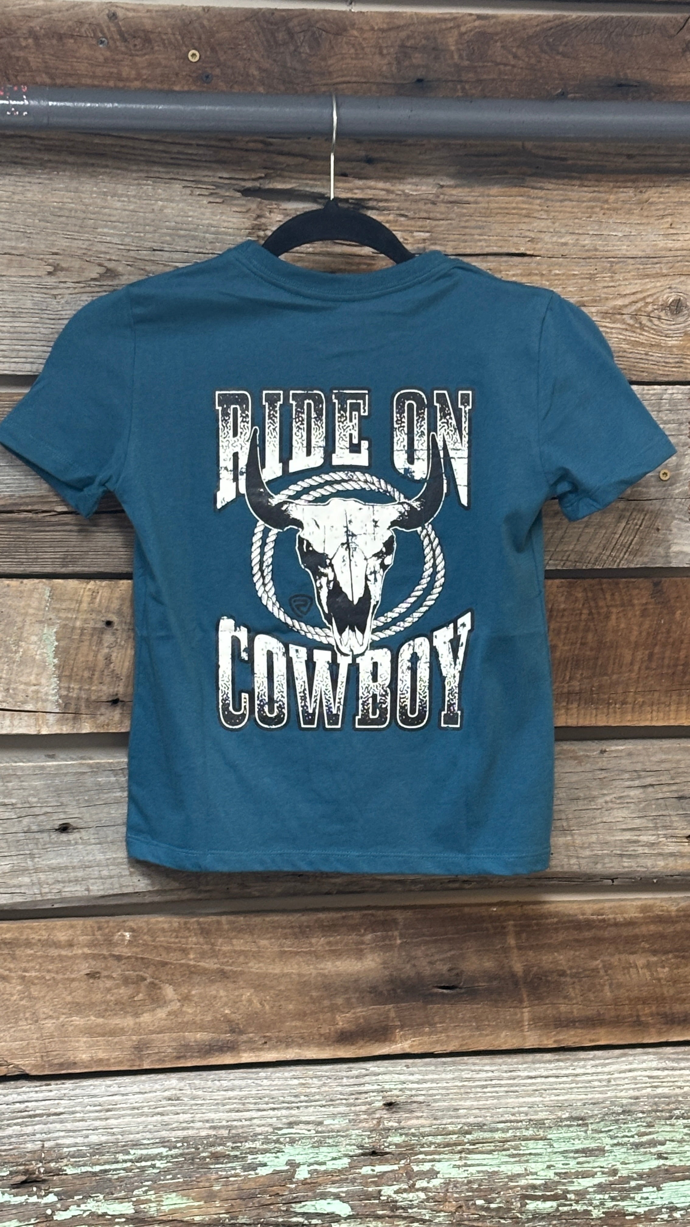 Be stylishly comfortable in this Ride On Cowboy Graphic Tee. Made from a comfortable 60% cotton and 40% polyester blend, this tee is made for a comfy fit perfect for everyday wear.