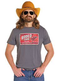 Rock & Roll Denim works hard to dress your inner rock-star so that you shine. Dale's Rodeo Time graphic tee in Gray.