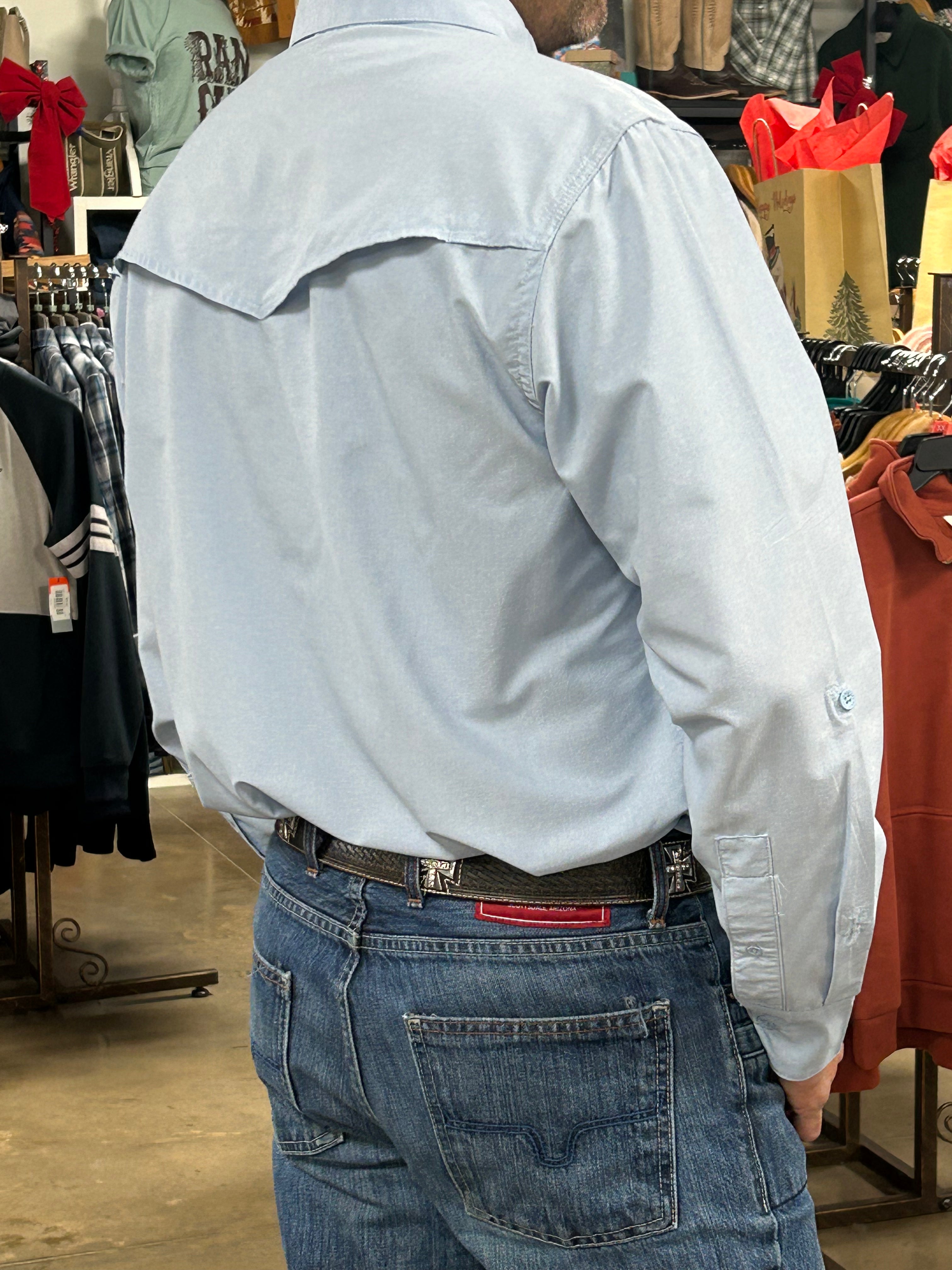 Few things are more authentically Western than our snap shirts. Our ATG by Wrangler™ Western snap shirt combines the best of the West with top-of-the-line outdoor features. The pearl snap buttons and flap pockets with snap closure lend this breathable shirt its authentically Western spirit while the glasses cleaner at the hem, convertible sleeves, back venting, and UPF 30 make it the perfect partner for all your outdoor adventures. Full of function and style, our ATG by Wrangler™ Western snap shirt easily transitions from the outdoors to a casual get-together with friends.