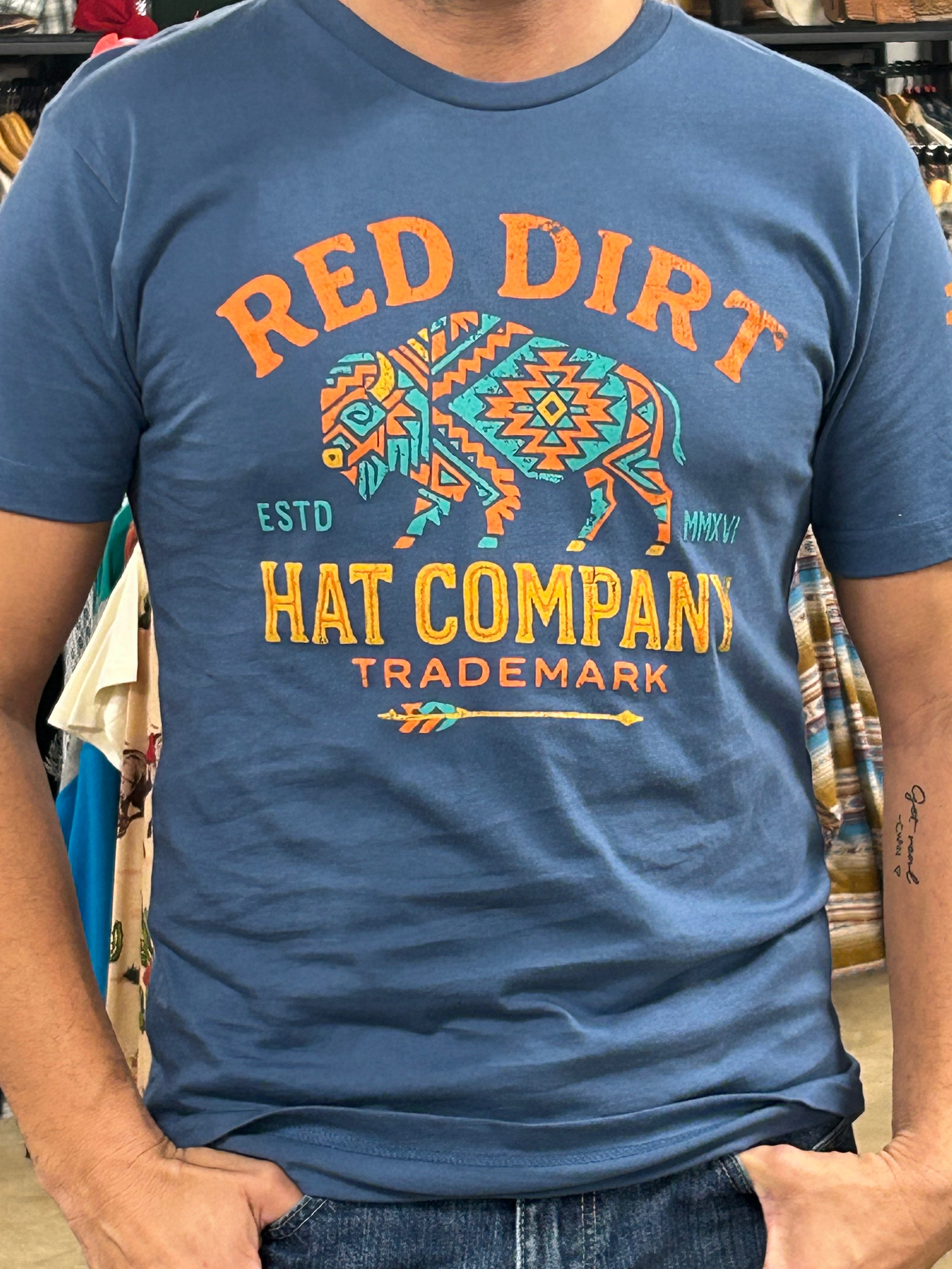 Stay true to the roam with the Sunset Roamer Tee by Red Dirt Hat Co. This soft heather blue tee features a bold “Red Dirt’” buffalo graphic on the front — perfect for anyone who loves wide-open skies and western grit.