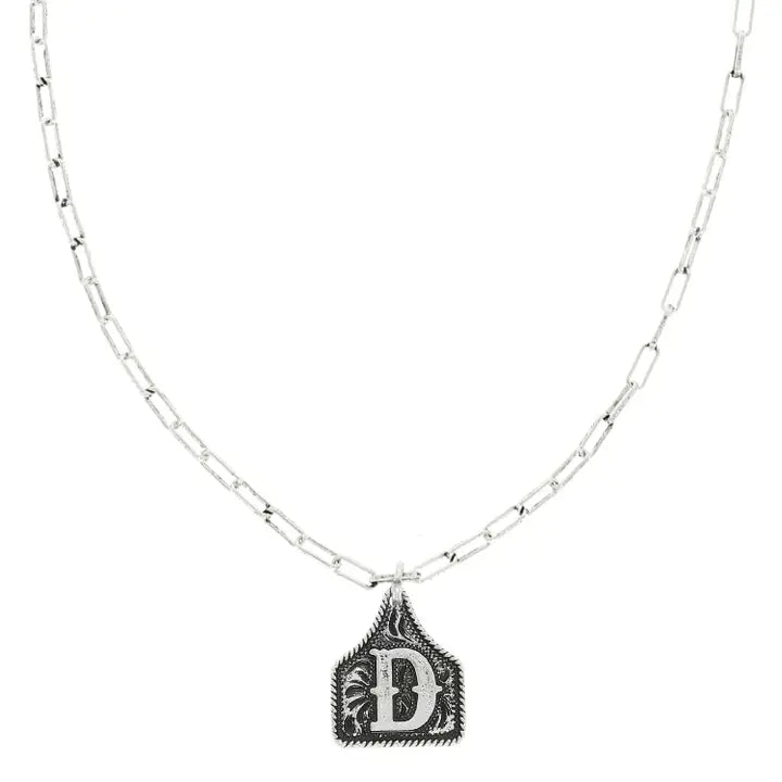 Western Initial Cattle Tag Pendant Necklace ~ D