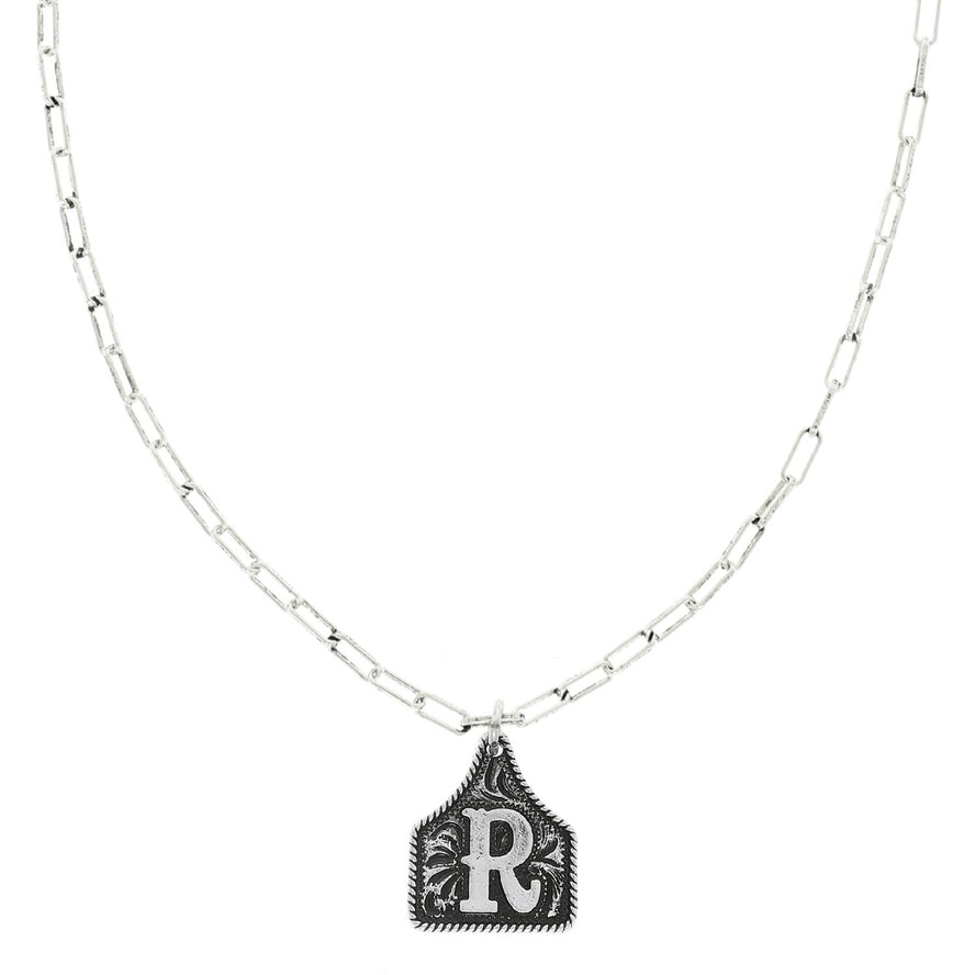 Western Initial Cattle Tag Pendant Necklace ~ R
