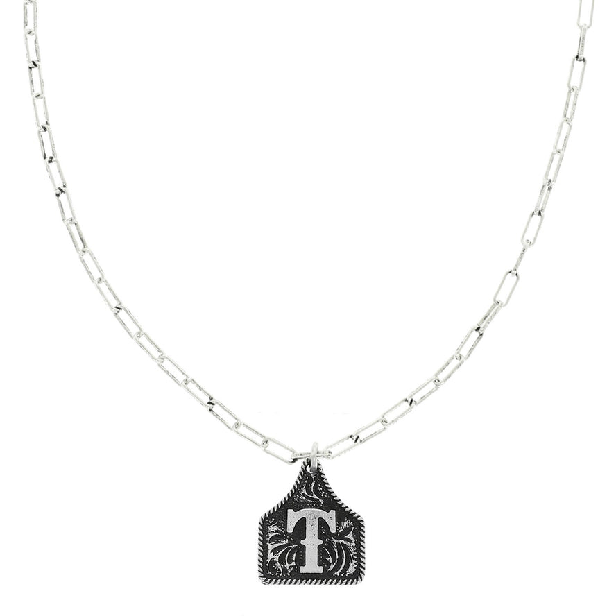 Western Initial Cattle Tag Pendant Necklace ~ T