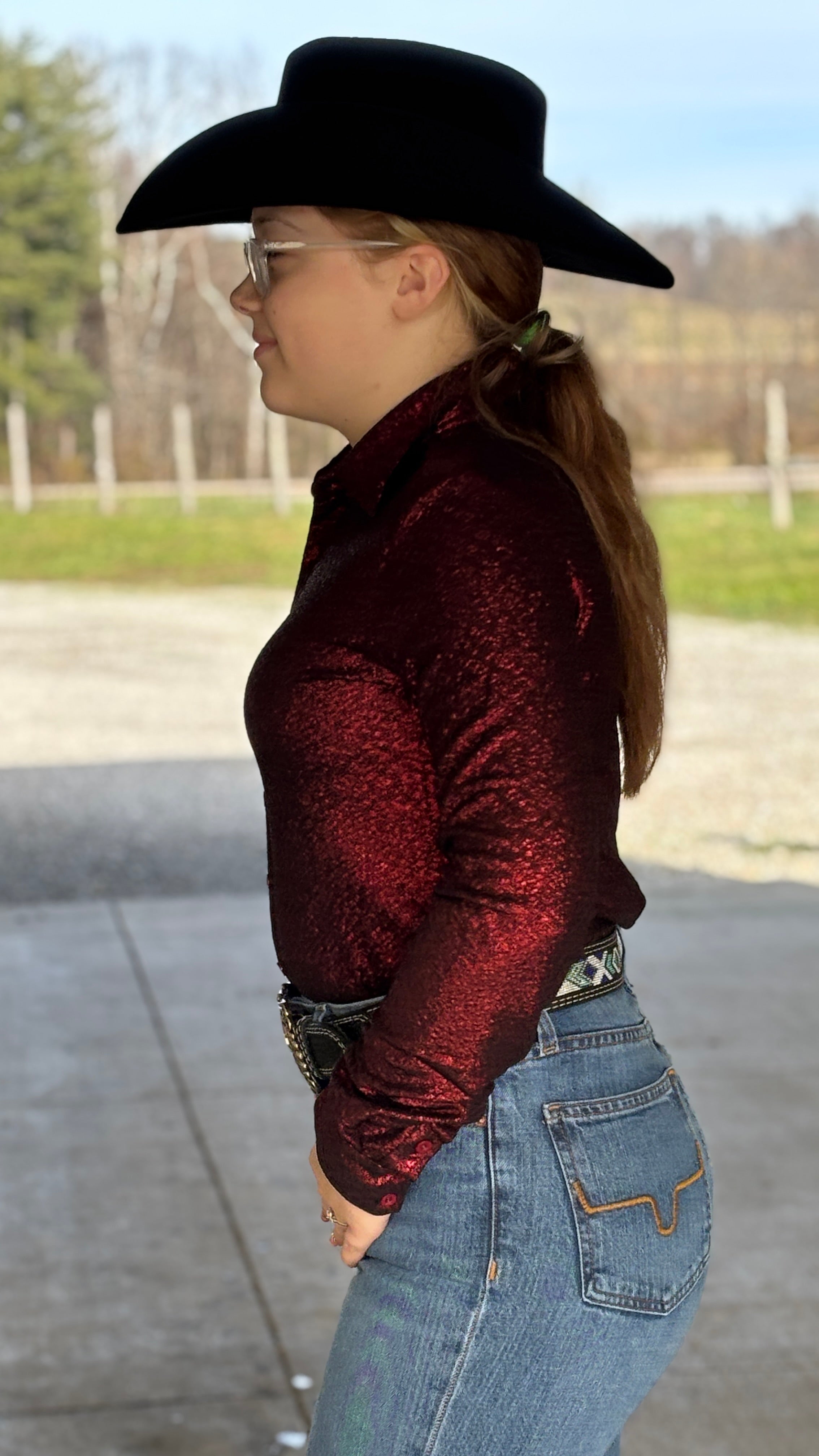 Pullover Button Up by Cowgirl Tuff ~ Red Shimmer