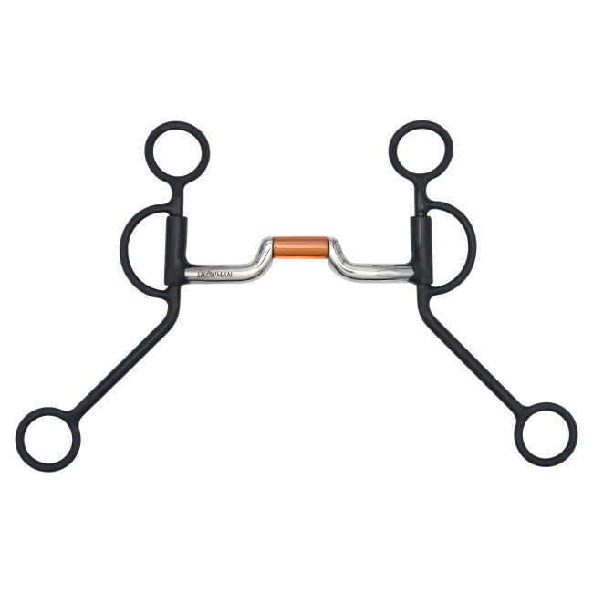 The low port hinge port mouthpiece ensures balanced pressure distribution across the horse's mouth, encouraging a soft and responsive mouth. The copper roller integrated into the mouthpiece promotes salivation and relaxation, enhancing bit acceptance and helping the horse maintain a comfortable connection with the bit. This feature is particularly beneficial for horses that may be more sensitive or reluctant to accept the bit.