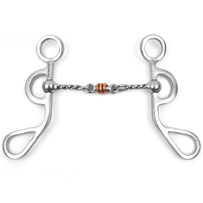 The mouthpiece combines twisted wire bars with a jointed dogbone center. The twisted wire adds definition on the bars, giving horses that tend to lean or brace a clearer boundary. The dogbone center lies flatter on the tongue and reduces the palate pinch often associated with a single joint. Independent side action keeps lateral cues crisp, helping riders fine-tune shoulder control and body alignment without excessive intensity. This bit offers a moderate-to-firm feel best used by confident, experienced hands.