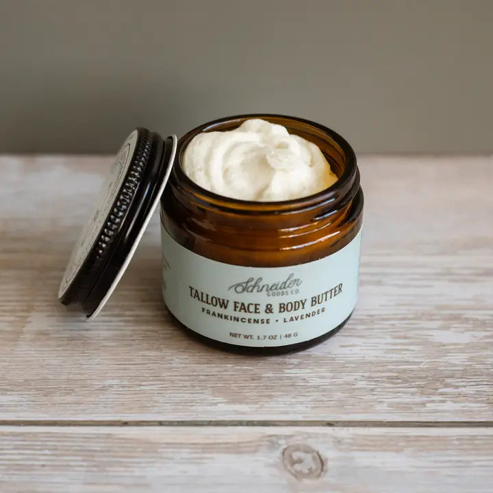 This nourishing whipped butter can replace so many different moisturizers with a single natural, non-toxic solution! We carefully render our tallow using suet from 100% grass-fed, grass-finished cows, raised locally and regeneratively. Used as a skincare ingredient for centuries, tallow contains fatty acids that support soft, radiant skin.