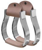 Showman ® Pony/Youth polished aluminum stirrup with light leather tread. 2.5" neck, 4.25" wide and 1.25" tread