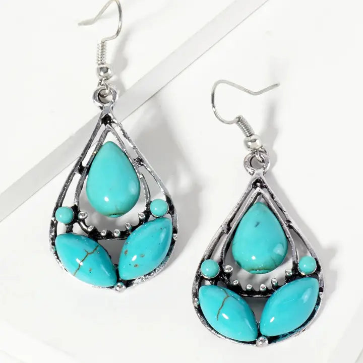 Double Teardrop Dangle Earrings with Turquoise Stones