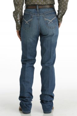 Built for the demands of cowgirls, the EMERSON fit provides a solid foundation for fit with its performance rise, relaxed thigh and knee, and straight leg. Forming this new all-around arena jean is neutral embroidery and medium stonewash with subtle hand sanding and whiskers. EMERSON - Performance Rise, Relaxed, Straight