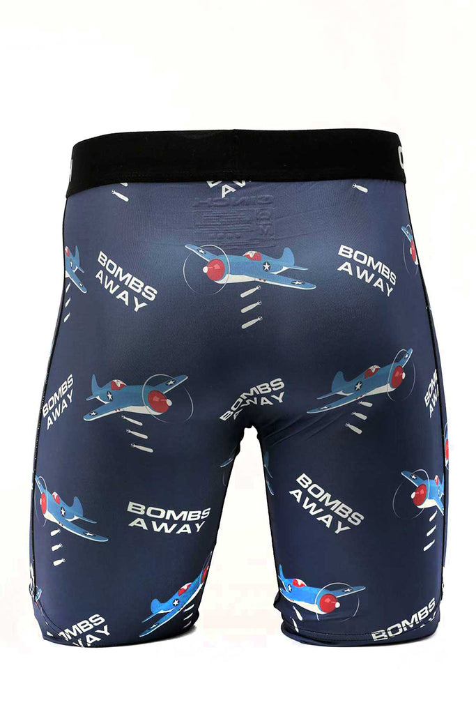 CINCH has your must-have everyday essentials, like this unique pair of Bombs Away boxer briefs. These 9" blue poly-spandex briefs feature four-way stretch moisture wicking fabric, contrast topstitch, no-ride leg seams, tag-free design, jacquard waistband with logo and antimicrobial treatment.