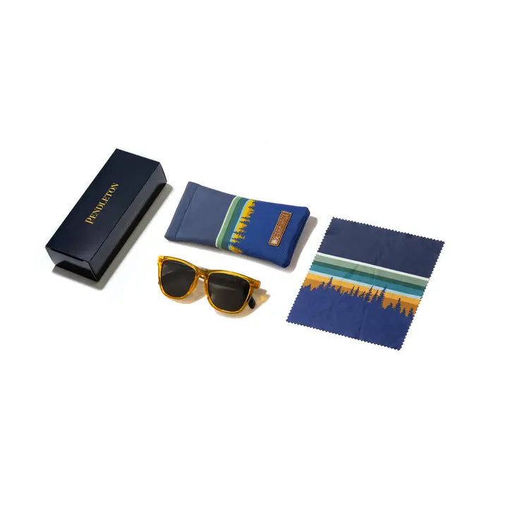 Never wear boring sunglasses again. Recycled frames and polarized lenses meet iconic Pendleton western patterns in this collection. Also available in Black and Emerald Crystal * Made from recycled water bottles * TAC Polarized lens offers 100% UVA/UVB protection * Includes matching Pendleton travel case and cleaning cloth * Measurements: 54/17/134 mm (lens/bridge/temple)