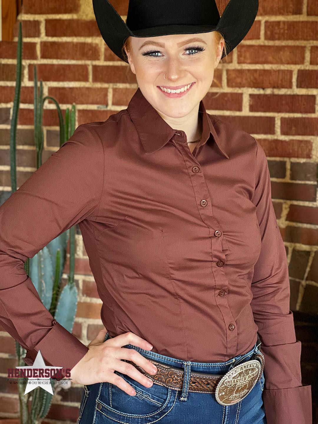 Cotton blend stretch material that will starch up well for a crisp show ring look. Missy fit