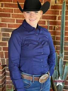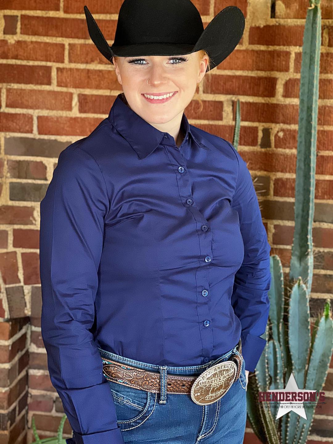 Cotton blend stretch material that will starch up well for a crisp show ring look. Missy fit